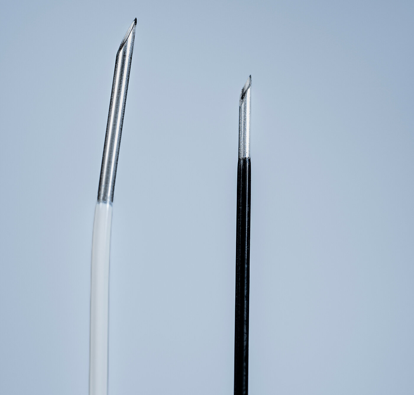 Auf Basis unseres interdisziplinären Fertigungs-Know-hows und der engen Zusammenarbeit mit unserem Kunden, sind hochwertige Kanülen mit einer homogenen und sicheren Beschichtung entstanden. Die glatte Oberfläche und der absatzlose Übergang der Beschichtung zur Kanüle verringern das Schmerzempfinden bei der Punktion. Die Thermoläsionskanülen wurden in diversen Stichlängen und mit unterschiedlich unbeschichteten Spitzenlängen realisiert. Einige Versionen verfügen über einen gebogenen Spitzenbereich mit seitlicher Öffnung für die Elektrode, wodurch das Koagulationsfeld vergrößert wird.
