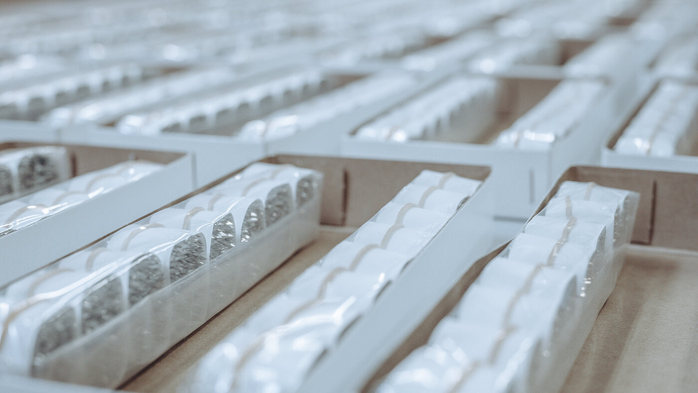 Zusammen mit dem Kunden entwickelten wir optimierte Schliffgeometrien, um die bestmögliche Wirkstofffreigabe zu ermöglichen. Ausgerichtet auf die effiziente Weiterverarbeitung beim Kunden, entwickelten wir eine spezielle Verpackung und installierten hierfür entsprechende Verpackungsanlagen.