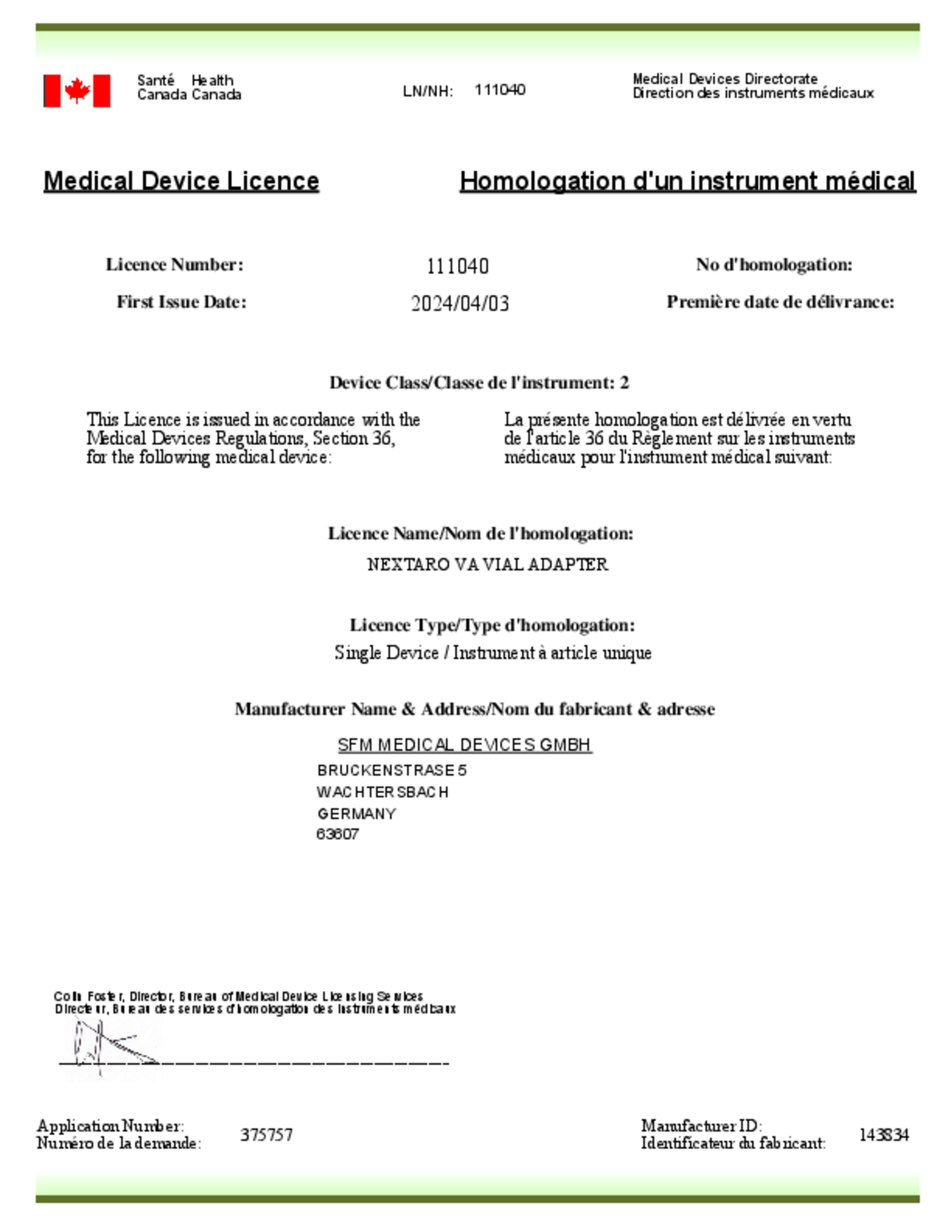 Medical_Device_Licence_Canada_nextarova_20037_2024